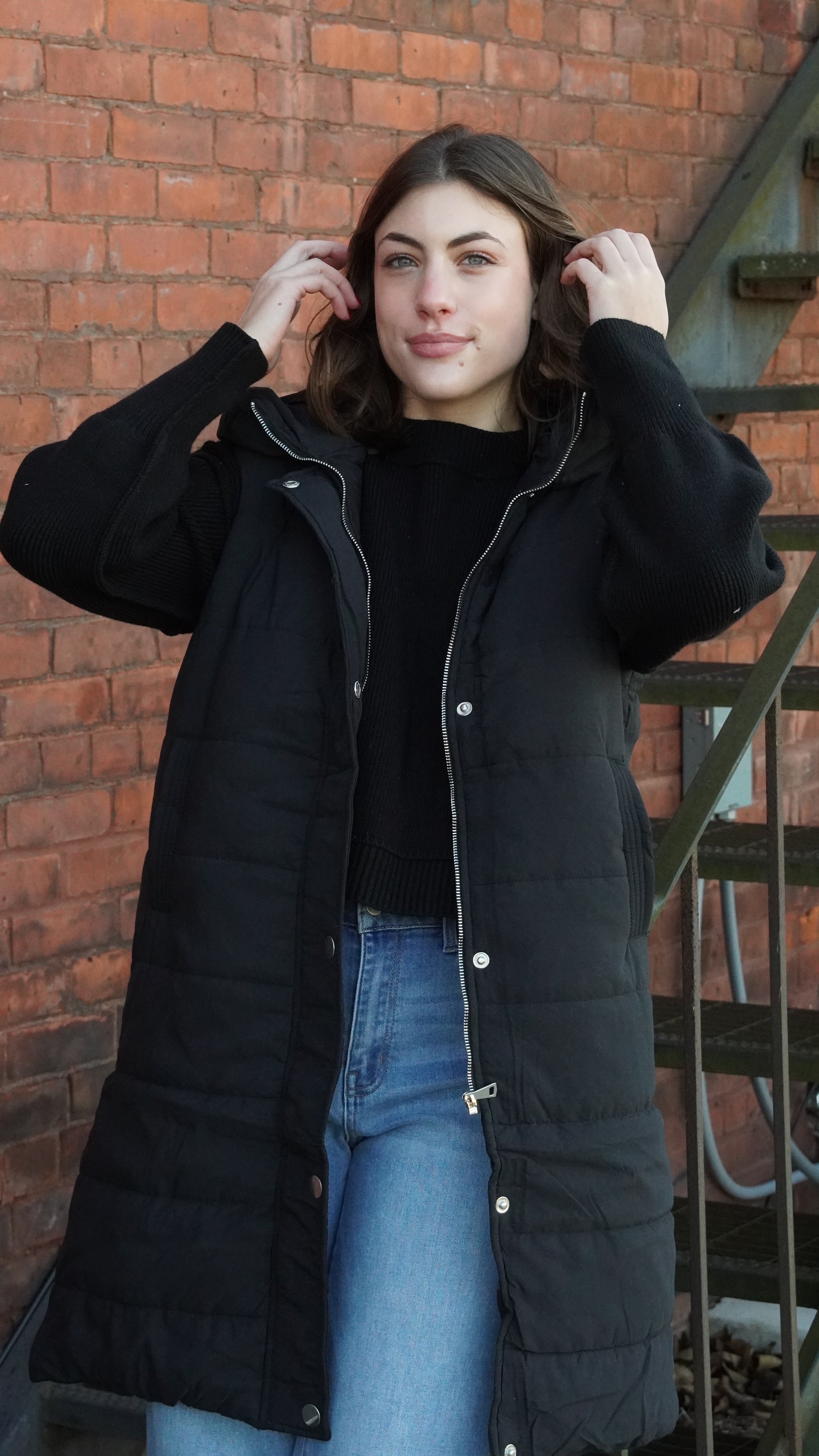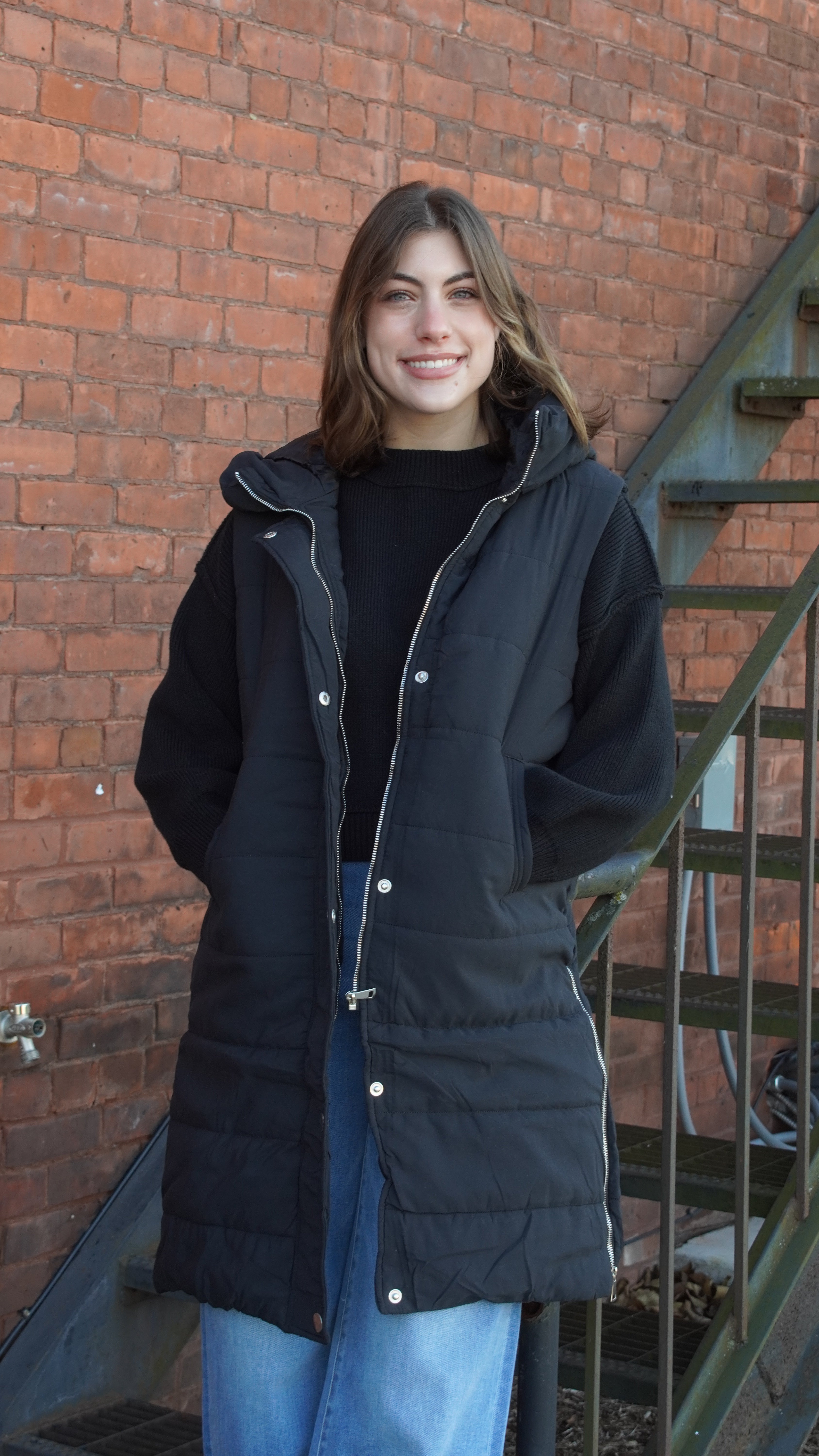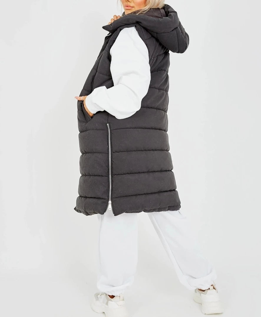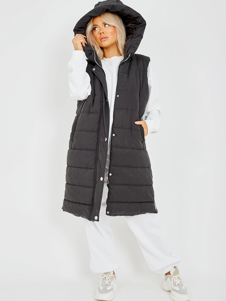 Black Longline Puffer Hooded Vest