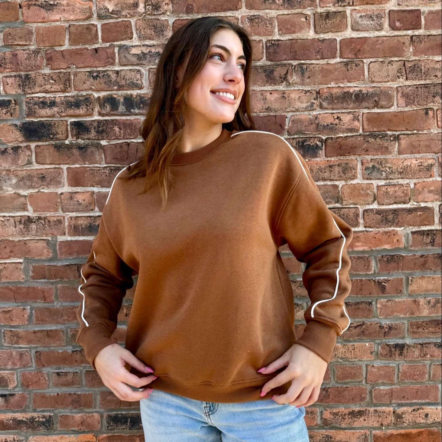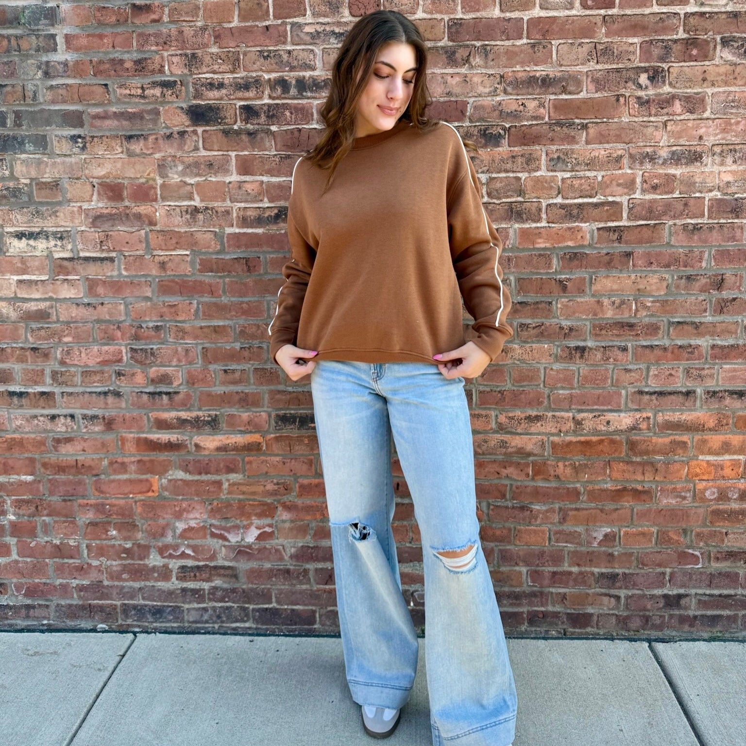 Brown/Ivory Side Stripe Fleece Sweatshirt