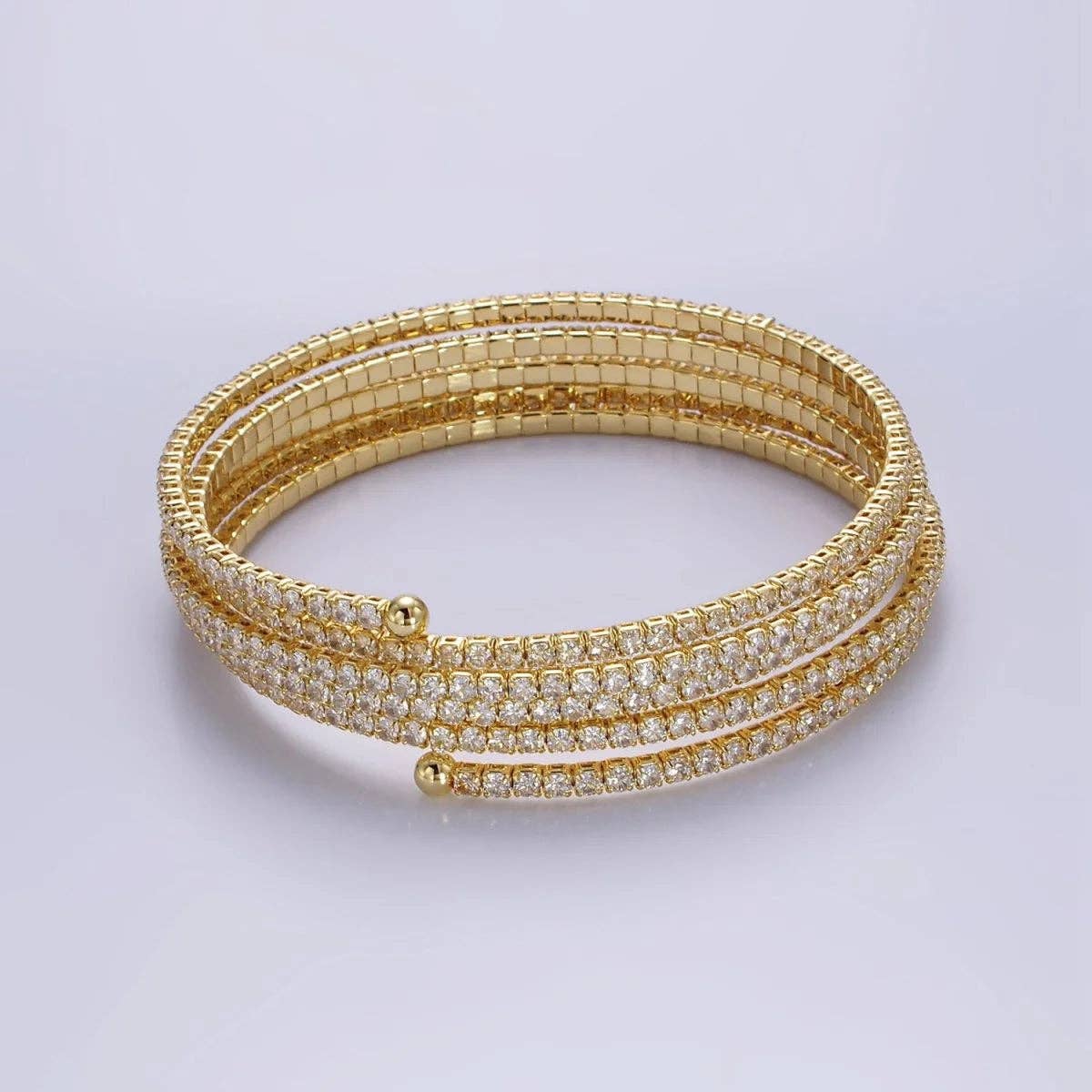 Clear CZ Gold Stacked Adjustable Bangle