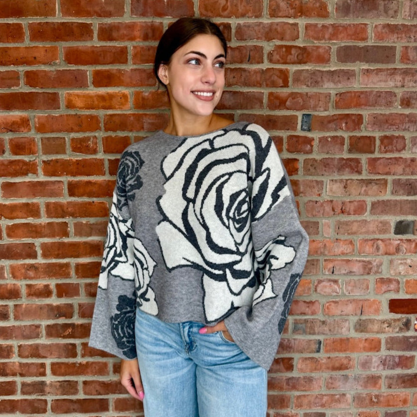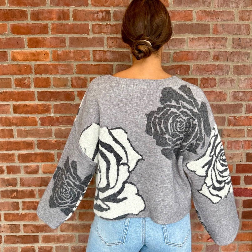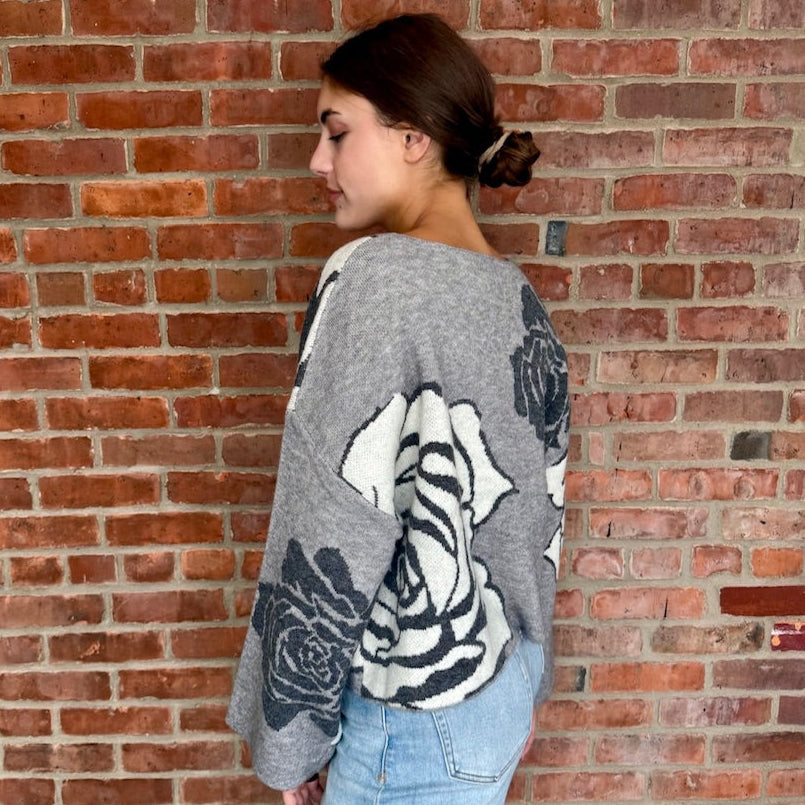 Grey/Black Rose Floral Jacquard Sweater