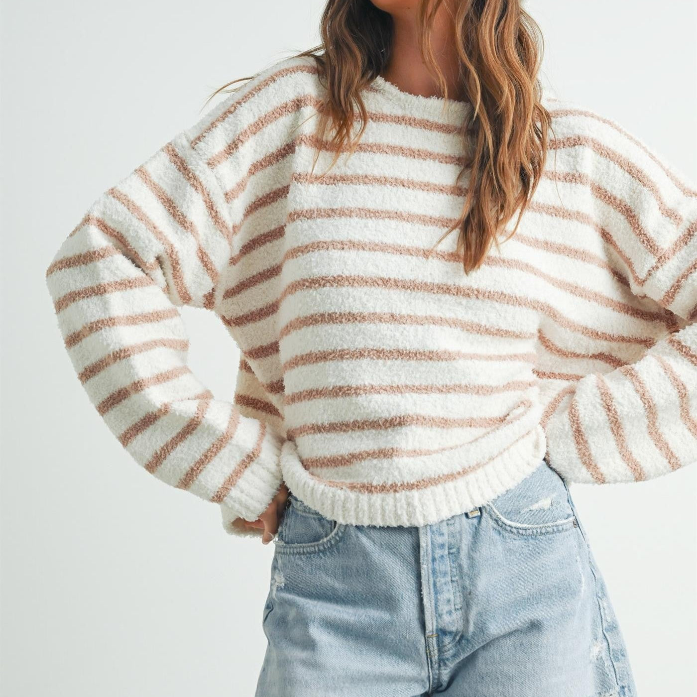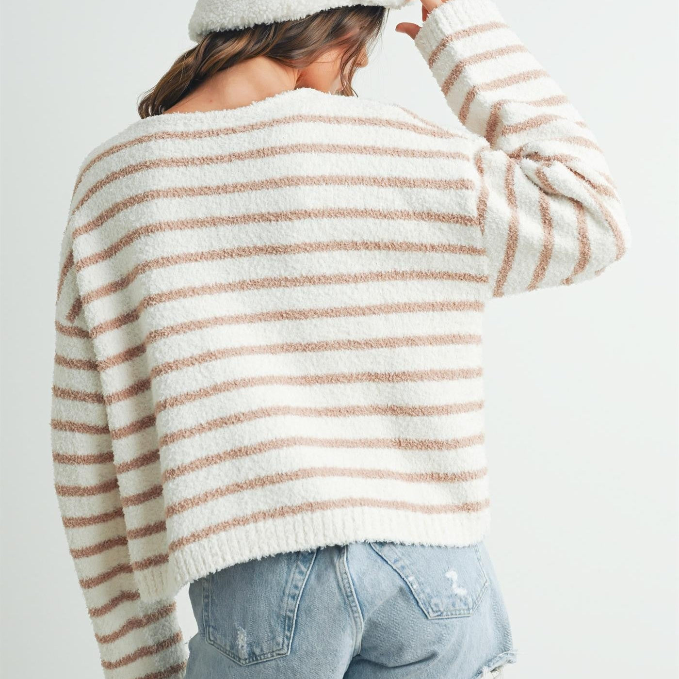 Ivory/Taupe Striped Soft Knit Sweater