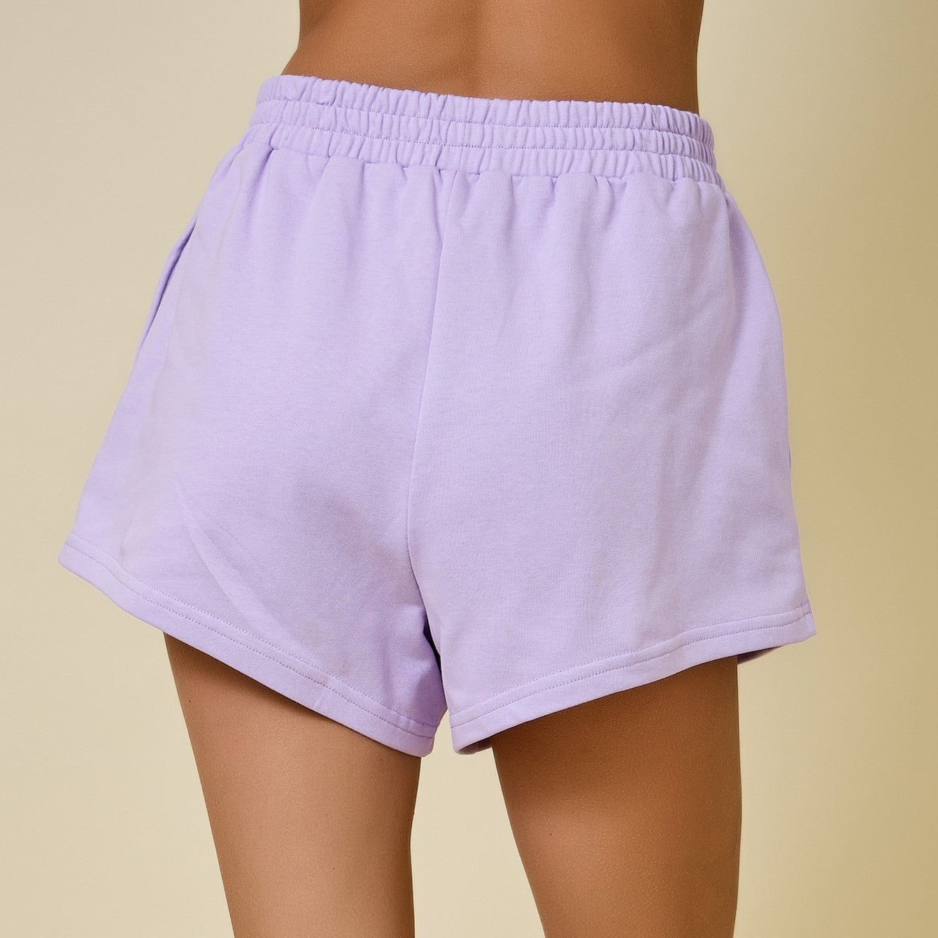 Wear as a matching set with the Lavender Mock Neck Terry Sweatshirt for a tonal athleisure look, or pair with a fitted white tee and slides for an elevated casual moment. The soft lavender hue transitions seamlessly from morning routines to weekend outings.