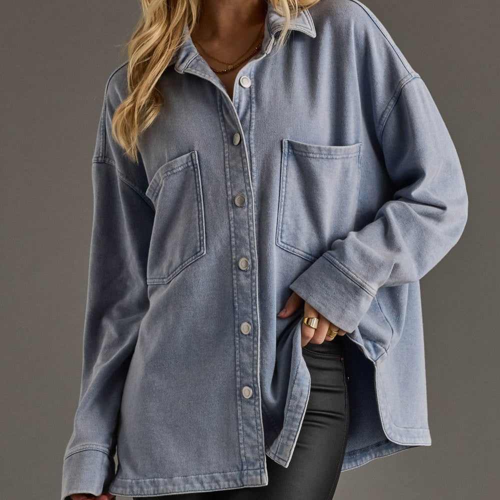 Wear it buttoned up with chinos for a smart-casual look, layer it open over a graphic tee and jeans for weekend vibes, or tie it at the waist over a dress for added dimension. The relaxed fit makes it ideal for layering under jackets or wearing on its own during transitional weather.