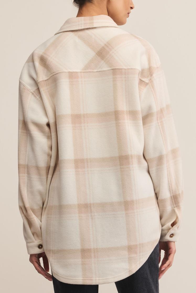 Introducing the Hiker Two Tone Fleece Jacket. Crafted with a button front and chest pockets for convenience, while its curved hem shape adds a stylish touch. The pearl snap button enhances durability. Expertly designed for the rugged outdoors. Length from shoulder 29".