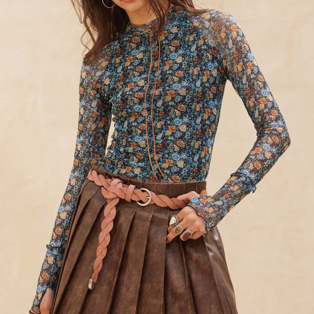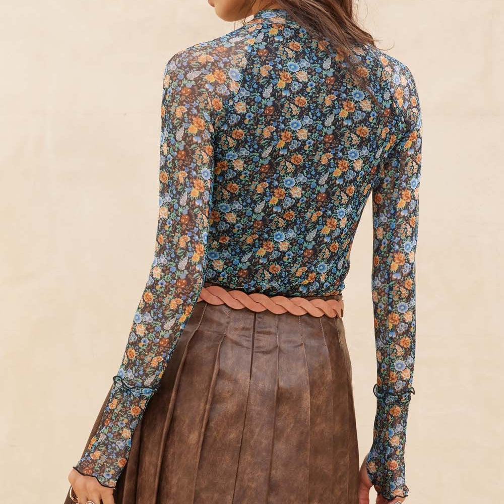 Teal Green Floral Mesh Top